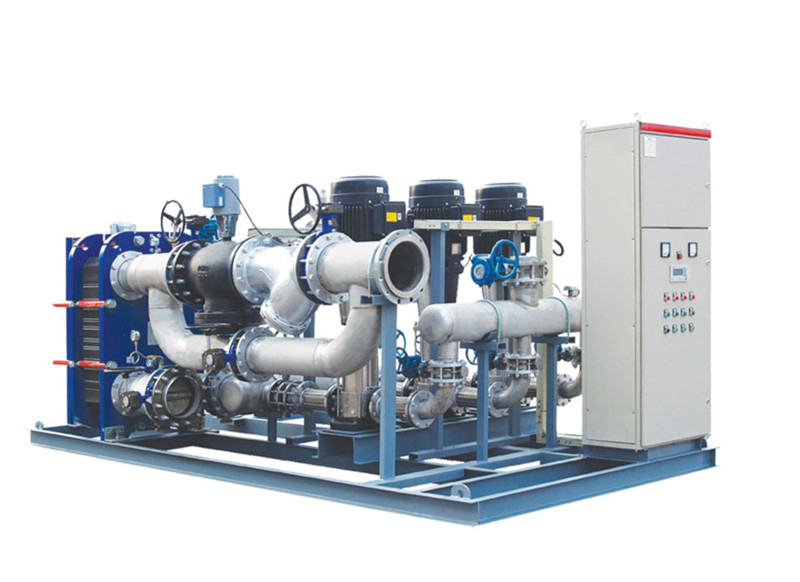 換熱機組的構成及工作原理換熱機組是集成板式換熱器、循環(huán)泵、補水泵、電控柜、溫控裝置、各種傳感器、熱量計、溫度計、壓力表、管路和閥1門等于- -體,并組裝在公共底座上的熱交換成套組合裝置。一次側熱源(蒸汽、高溫水等),經過除污器過濾后,進入板式換熱器與二次側循環(huán)水進行熱交換,然后返回一次側回水管網。二次側循環(huán)水經過除污器過濾、循環(huán)泵加壓后,進入板式換熱器與一次側熱源進行熱交換,然后進入二次側供水管...